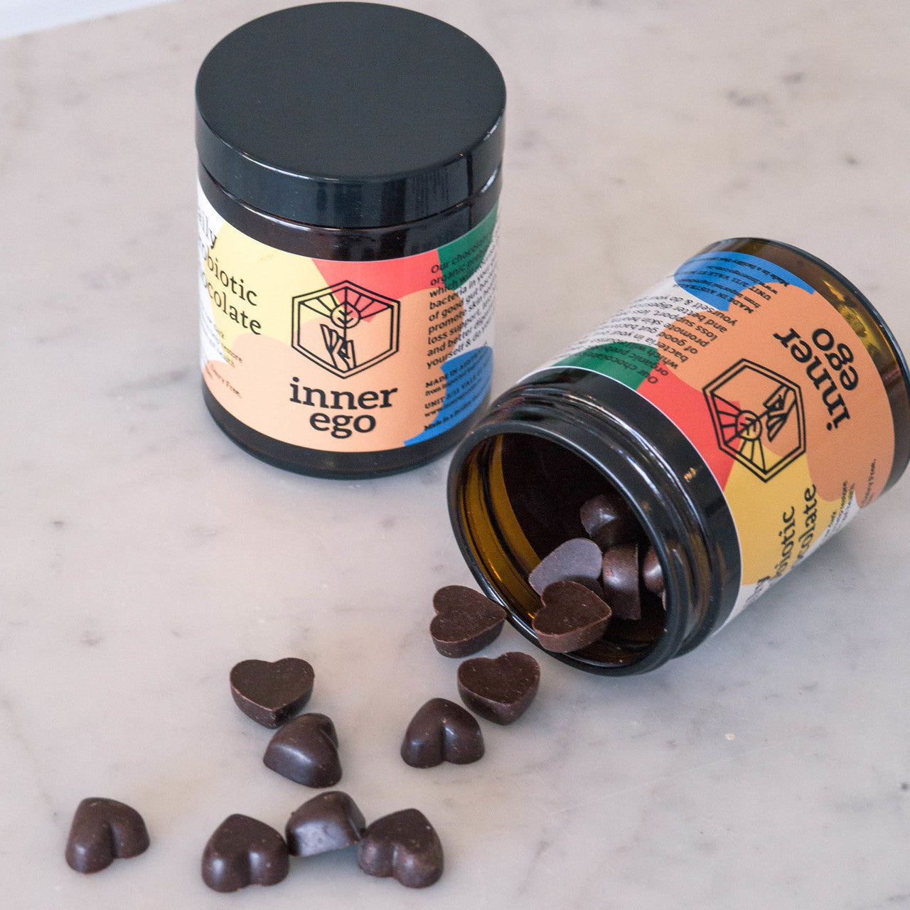 Our chocolates are made with probiotics and organic prebiotics, which help replenish and nourish the beneficial bacteria in your gut to balance your microbiome. Maintaining a healthy microbiome can improve skin conditions, promote healthy brain function, rebalance digestive issues, support immune health and assist in weight management.