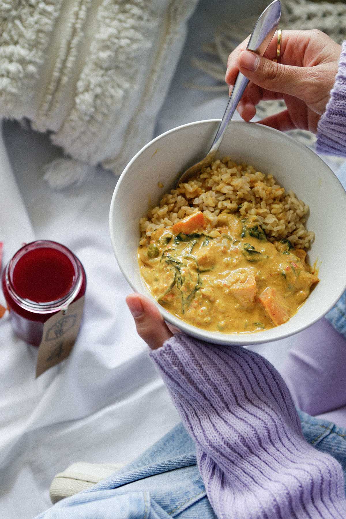 A delicious, creamy vegan curry, with turmeric, cashews and coconut milk.
